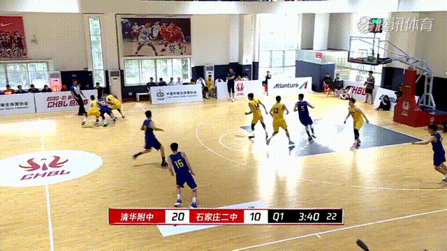 首节比赛清华附中打出了强势的状态,在防守端接连完成高质量包夹和抢断,而在进攻端清华附中几位内线球员轮番制造杀机。先是15号张陈治锋在篮下补篮得手,随后12号李信仪里突外投连拿7分。
