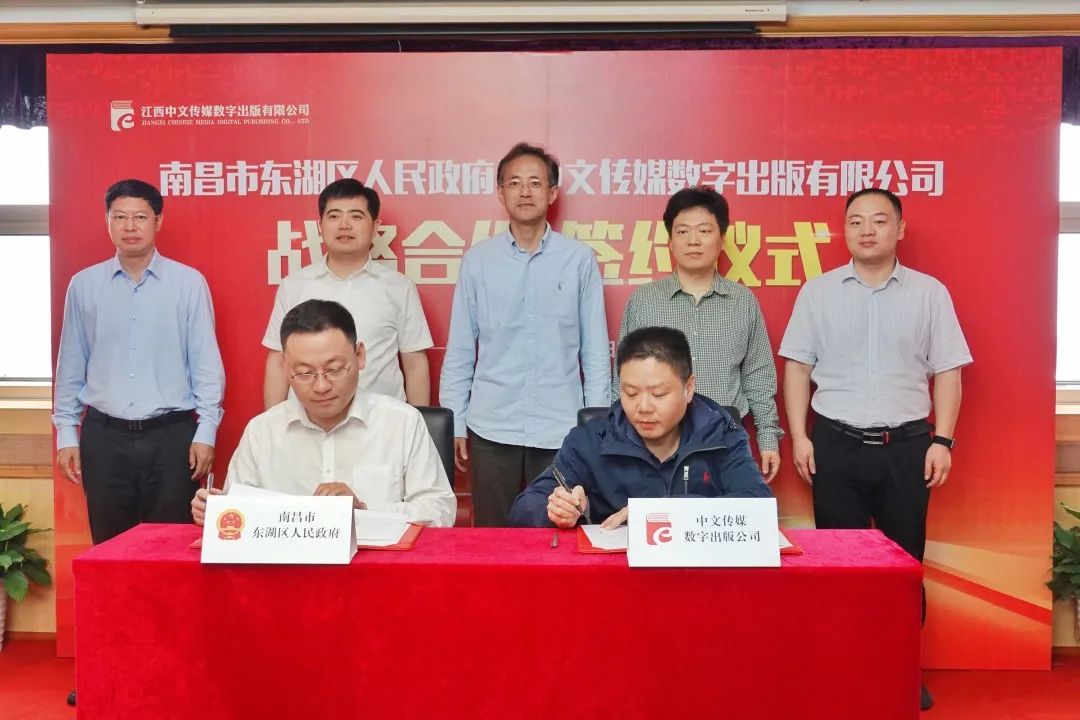 5月19日上午,江西中文传媒数字出版有限公司与南昌市东湖区人民政府就江西中文传媒数字科技产业园项目举行战略合作协议签约仪式。南昌市东湖区区委副书记、区长胡俊峰,区委常委、常务副区长宣治,区委常委况灯明,中文传媒党委委员、副总经理,江西中文传媒数字出版有限公司董事长刘浩,江西中文传媒数字出版有限公司执行董事、副总经理(主持工作)夏阳春等出席签约仪式。