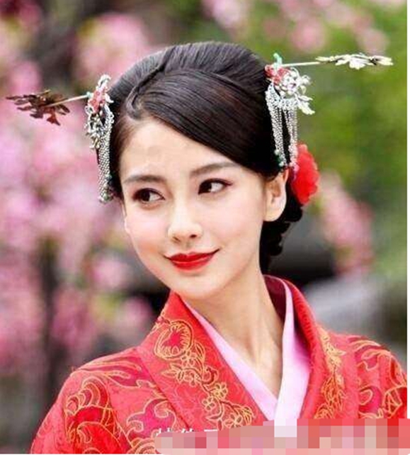 这是她在《云中歌》中的造型,虽然杨颖的演技不太好,但是杨颖的古装还是很惊艳的,这个盘发也挺好看,唯一毁头发的是头发两旁的钗子,这两个钗子真是插的多此一举,本来很好看的造型硬是被插成了两根天线,难道古代也要接收信号吗?