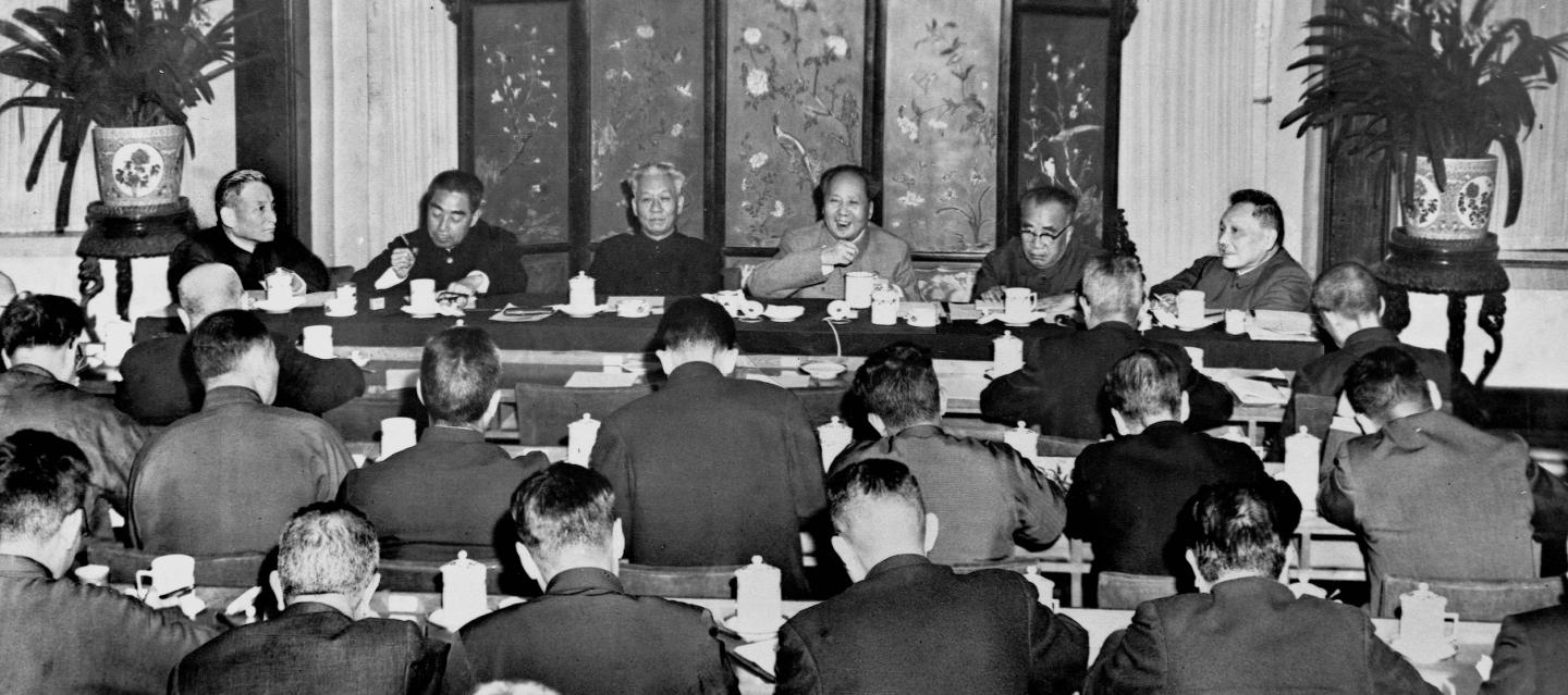 1961年1月,毛泽东在北京举行的中共八届九中全会上讲话,要求全党大兴调查研究之风,1961年要搞个实事求是年。新华社图片