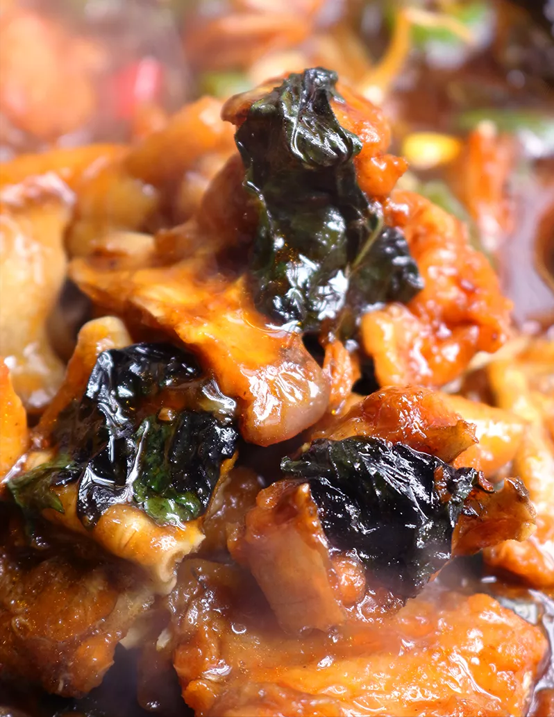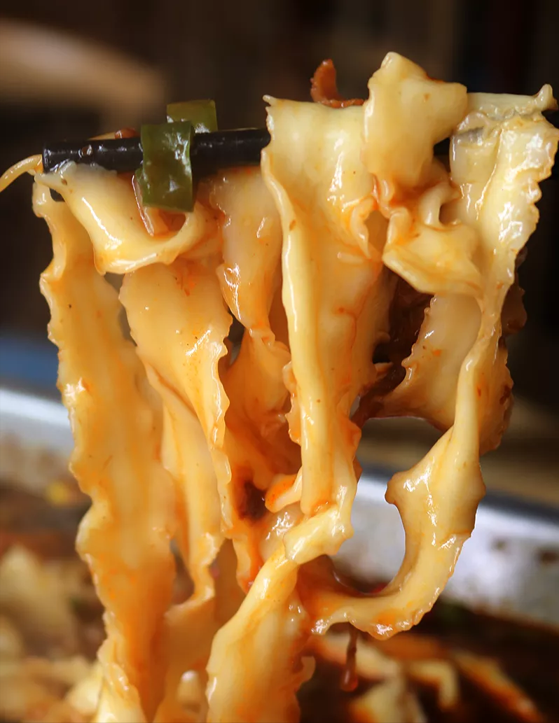 每块蛙肉都带着流畅的线条感,肉质细腻紧实,入口微辣让人松懈了防备,细细咀嚼时,汹涌的辣意才排山倒海而来,够辣!够爽快!
