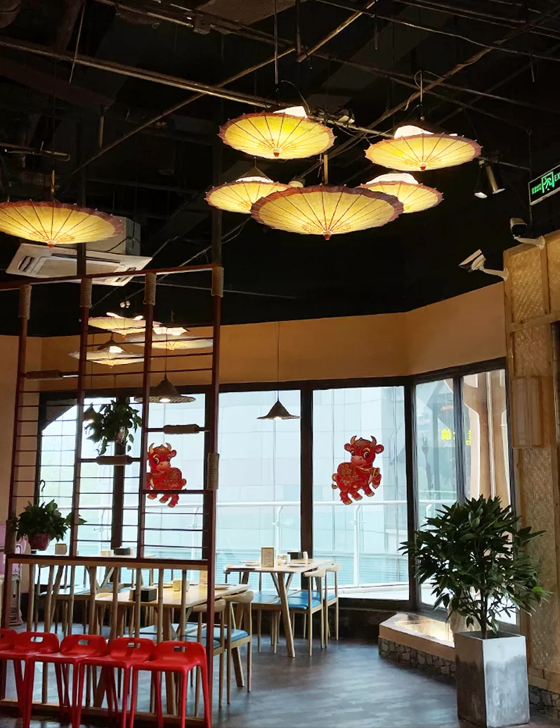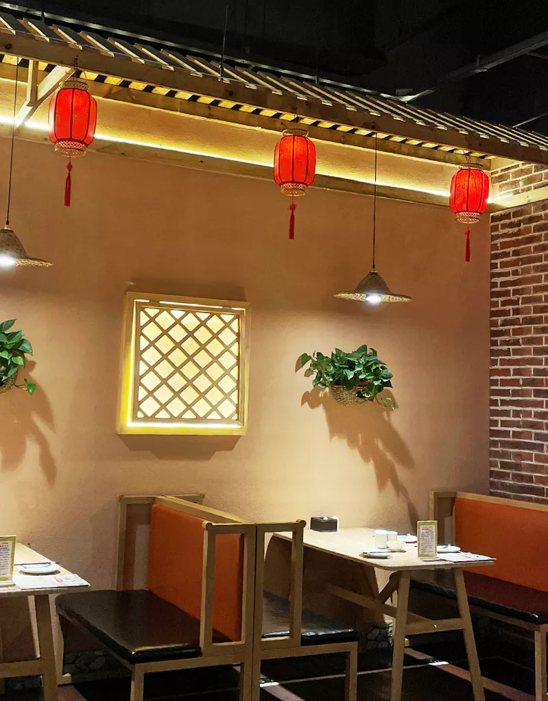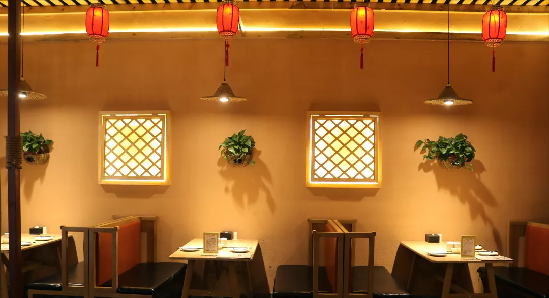 高挂的灯笼散发出暖色的光,仿古的镂空窗户和摆设,满屋的江湖豪气,在这里不管是拍照还是吃饭,不会令你失望。