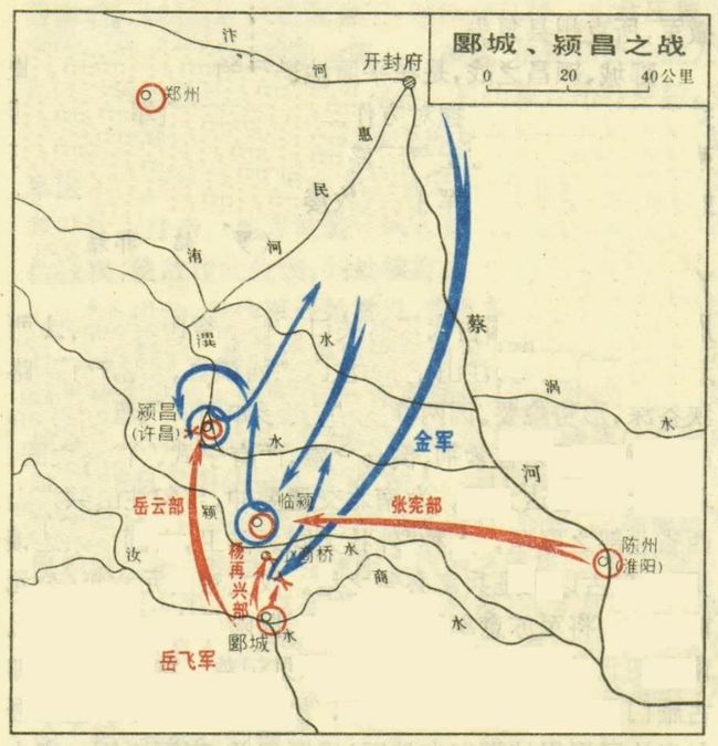 公元1140年,刚刚取得郾城大战胜利的岳飞北伐大军,又遭到了严峻考验:刚吃了血亏的金兀术,又率领十三万大军直扑颖昌,岳飞闻讯后急命长子岳云率岳家军增援。七月四十日,岳家军与十三万金军在颖昌展开大战:在己方兵力严重劣势的情况下,岳家军愤然亮剑,岳云亲自率领八百骑兵向敌人发起冲锋,步兵从两翼向敌包抄,激烈的战斗从早晨开打,前后血战几十个回合,到中午时十三万金军终于崩溃,再次被岳家军杀得大败。