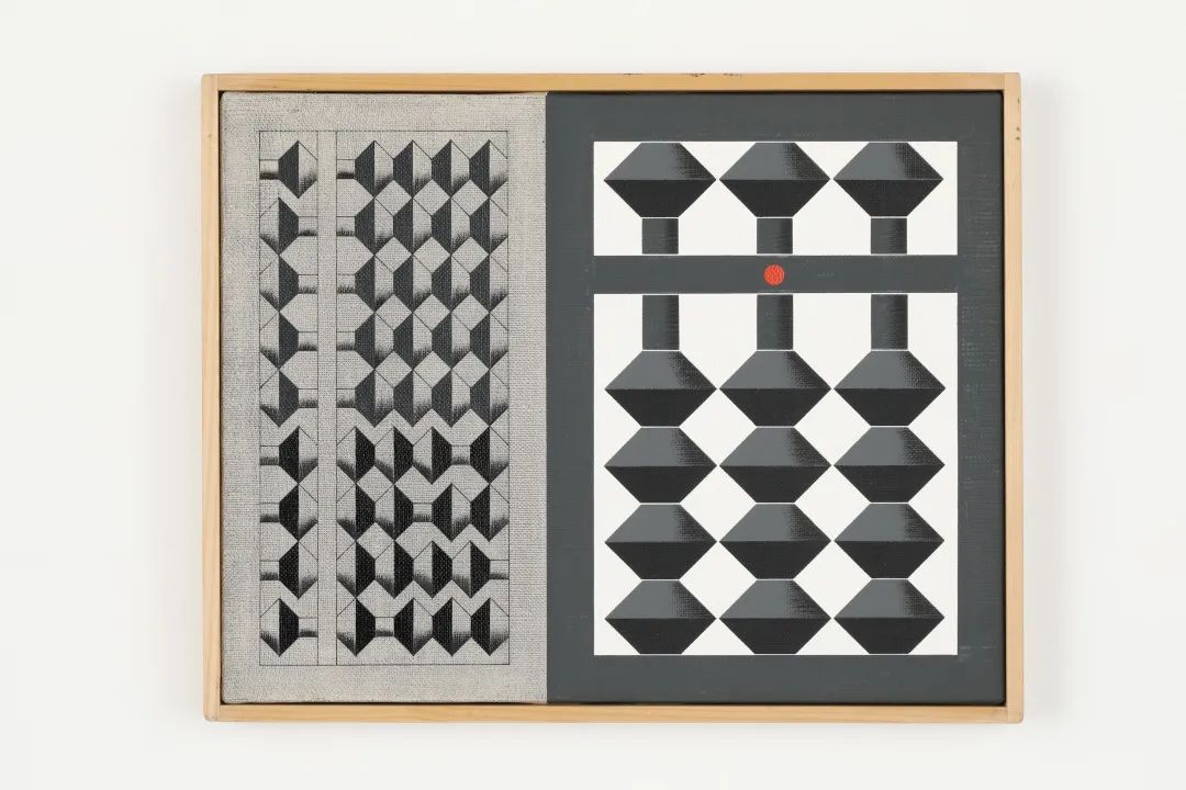 关根美夫是1954年具体派(Gutai)的创建者之一。1963年,关根美夫在东京举行的“第15届读卖独立展览”上展示了他的“算盘画” ,从那以后的25年里,他创作了一系列以算盘、大门、马车和富士山为主题的画作。这些单一主题的连续变化显示了艺术家对强烈的形式结构和秩序的坚持,它们通过重复节奏和韵律来发挥作用,具有一种沉思和舒缓的品质。