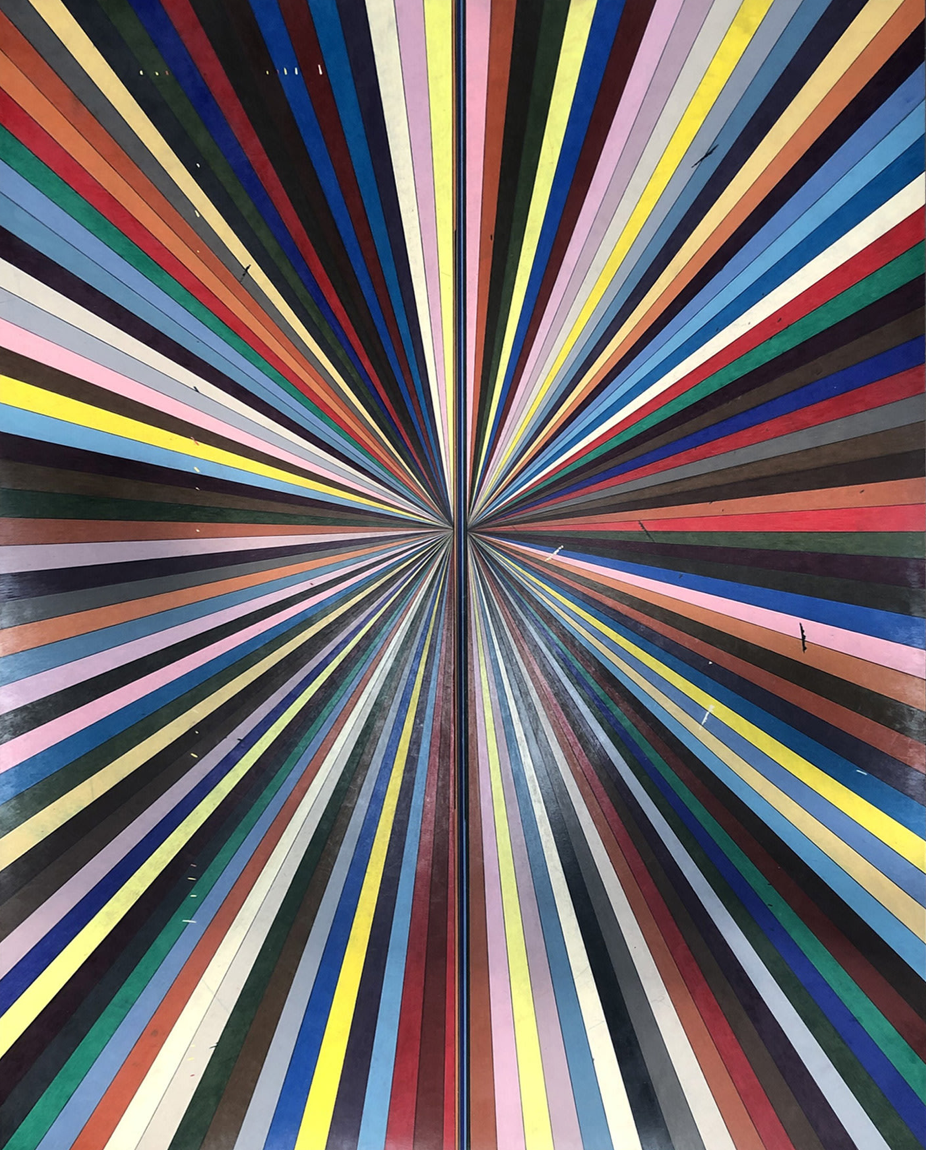 Mark Grotjahn, Untitled (Full Color Butterfly 54.11), 2020, Color pencil on paper, 121.9 × 96.5 cm,