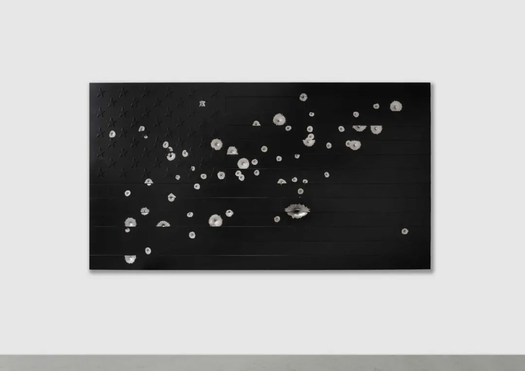 2021,Stainless steel, black paint, bullet holes,140 × 266 × 4 cm,©MASSIMODECARLO