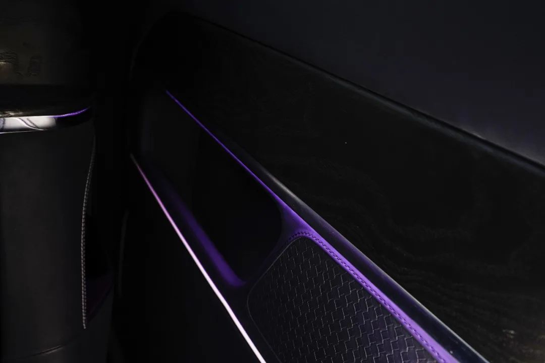 出于安全考虑,第二排座椅不能180度放平,但角度特别迎合人体舒适度,再配上柔软的航空头枕,催眠效果极佳。新增杯托、手机无线充电等诸多人性化配置。同时,这辆车选装了岑木饰条和紫色环境氛围照明灯带,可以为后排乘客营造头等舱级别的享受。