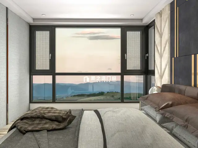 卧室是劳累一天后终于可以安静下来休息的地方,这里会需要一扇隔热、静音的门窗。美之选断桥铝门窗其结构经精心设计,接缝严密,空气隔声量达到30-45db,就算毗邻闹市也可保证室内的宁静安心。
