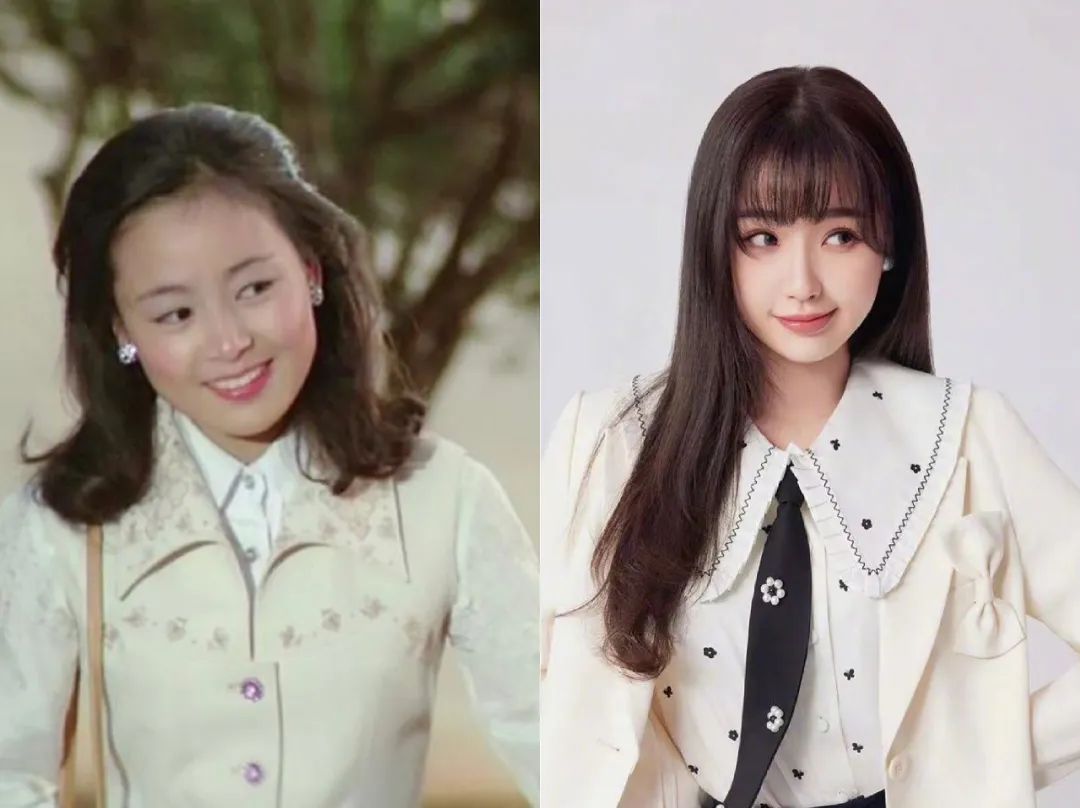 奶黄色大翻领泡泡袖,内搭白衬衣,锁骨发外翻修饰脸部轮廓,不就是现下流行的虞书欣式“复古大小姐”风格?
