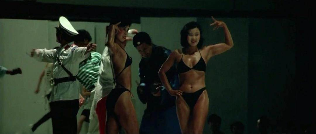 上面的剧照,是三个顽主在电影中玩了一场健美表演和时装秀。这段剧情和画面,在豆瓣上被人评价为“惊为天人”“自由度可见一斑”。