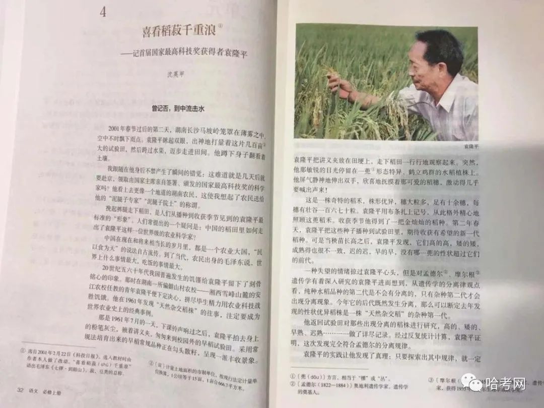 高中语文教材《喜看稻菽千重浪——记首届国家最高科技奖获得者袁隆平》
