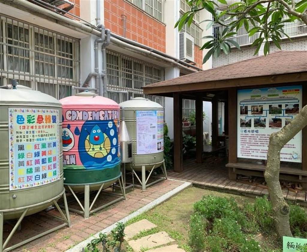 桃园市中平小学将雨扑满设置为“环教主题校园户外教室”,提供学生水资源学习园地。(教育部提供/林志成台北传真)图片来源:台湾《中时电子报》