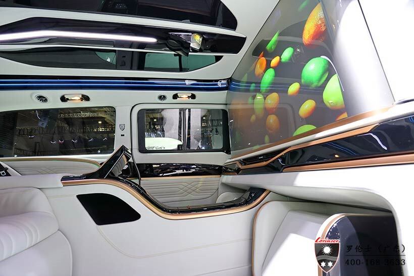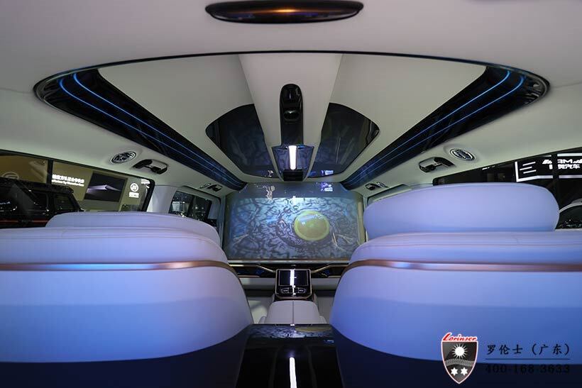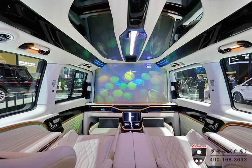 智能香薰系统、智慧光影&照明系统、Lorinser私属定制星空之夜内顶,50吋无边框100%的屏占比电视配置,杜比全景声音响系统,多元化的输入接口,手机投屏,座舱智能温控系统,自主新风换气健康系统,拥有超强感知力的智慧座舱 ,带来主动式的智能交互专业体验,设计理念到实行,始于您是否上车。