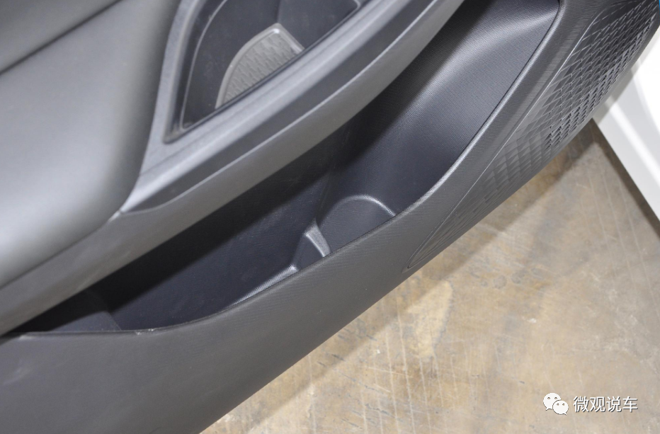车内的储物空间也还可以,中央扶手区域内部空间比较大,可以装不少零碎物品,门板上的储物空间可以放两瓶水,实用性还不错。