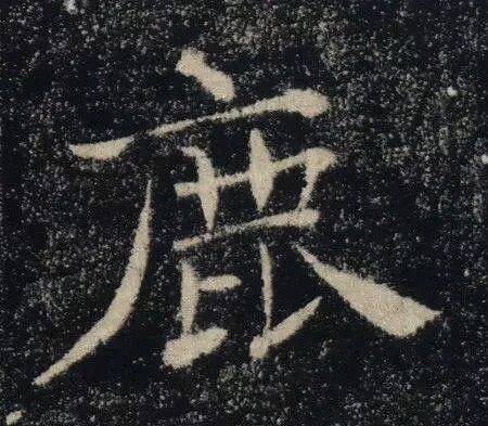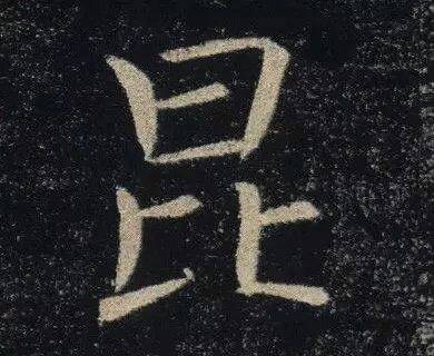 此碑中字很难找到平直的笔画,每一笔都通过跳跃的用笔节奏展示笔画的丰富姿态,这一点,随便找出一个字都可以感受到。有人说他追求的是“唯美”,倒也不为过。我们看“鹿”,可以想见每一笔的提按动作,笔画姿态的丰富。“昆”也是同样的效果,“横折竖”必然要有丰富的节奏变化,此一笔要高出《阴符经》很多。