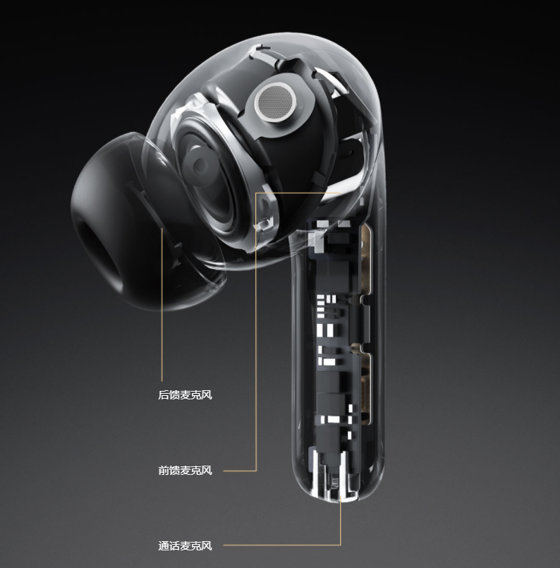 小米降噪耳机 Pro 的英文名称为 FlipBuds Pro,采用高光纳米 NCVM 镀膜工艺,搭载前馈、后馈、通话三个麦克风,配备全球首发的高通 QCC5151 旗舰蓝牙音频芯片,支持通透模式等功能。