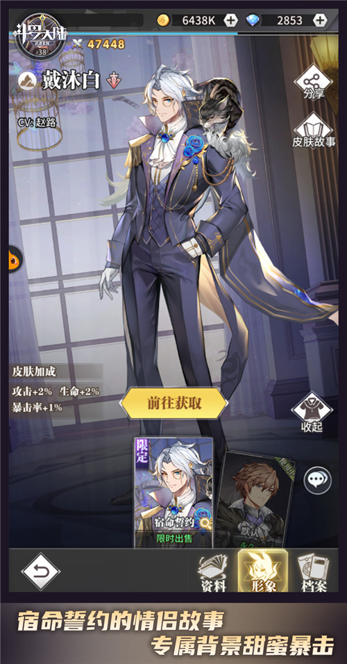 始于颜值升级,终于战斗实力提升。戴沐白与朱竹清的这款宿命誓约皮肤,不仅颜值在线,还可魂师角色的属性哦~皮肤可提升戴沐白或朱竹清的攻击+2%、生命+2%、暴击率+1%哦!