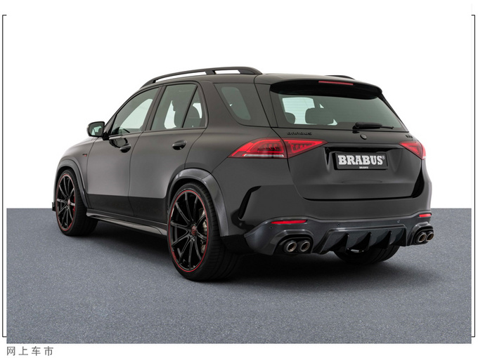 梅赛德斯-AMG GLE 63S巴博斯改装版前脸装配了碳纤维材质打造的直瀑式进气格栅,并在格栅上方加装了巴博斯车型专属LOGO徽章以及双红色饰条,下方保险杠也同样采用了碳纤维材质打造。车身侧面装配了10×24寸Monoblock Z Platinum Edition轮辋,并配备了295/30轮胎,同时空气悬架经过Brabus的重新调整,将行驶高度降低了25mm。车尾则选用了双边双出式排气布局,尾部保险杠也采用了碳纤维材质打造。