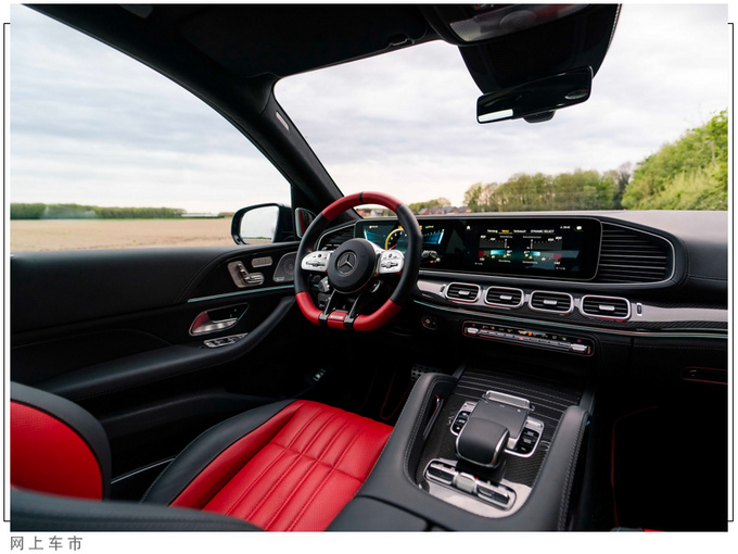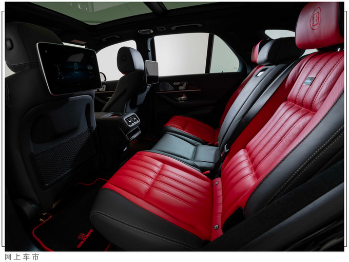 梅赛德斯-AMG GLE 63S巴博斯改装版内饰配备了三辐式平头运动多功能方向盘,并在部分区域加入了红色元素进行点缀。中控台上方搭载了液晶仪表+液晶中控一体式悬浮屏幕,同时下方座椅也选用了红黑双色拼接,部分区域加入了碳纤维饰板,进一步提升了内饰运动氛围。