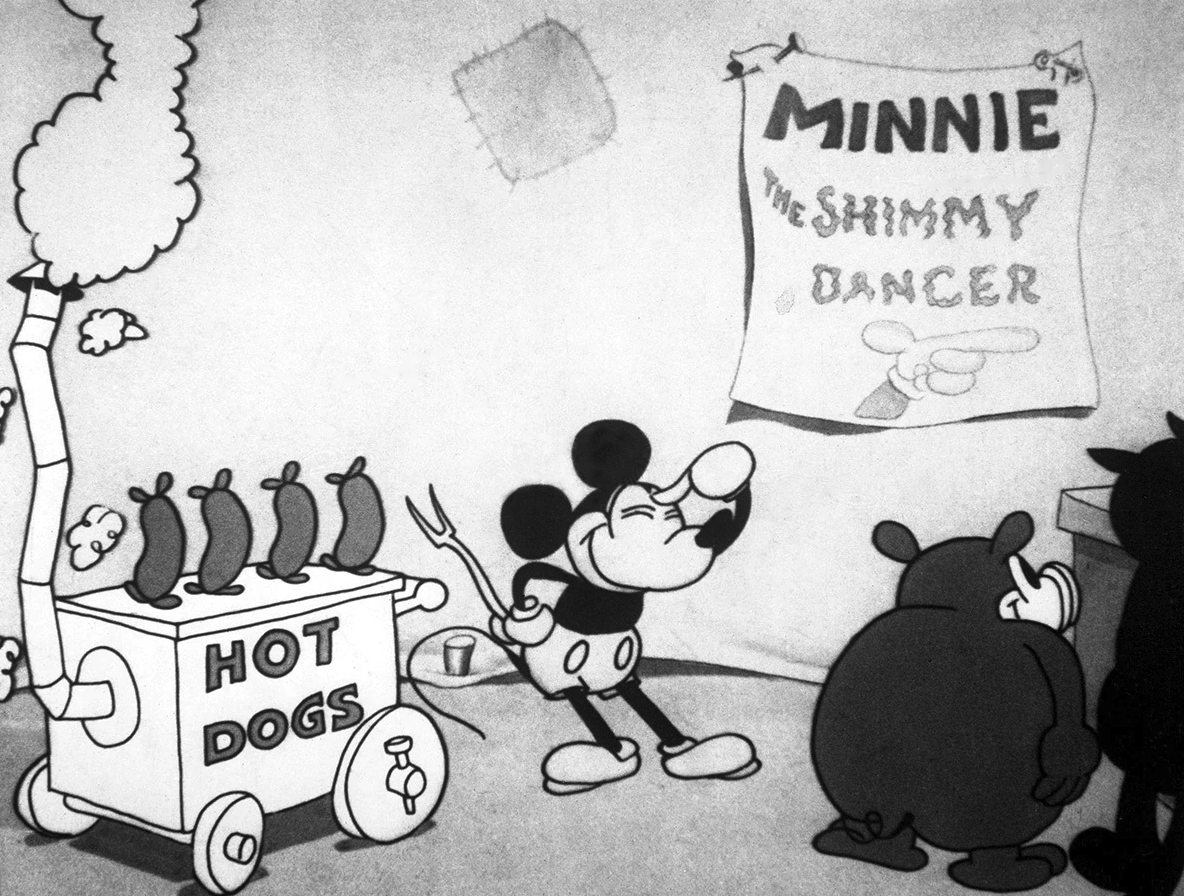在《嘉年华小子》里,米奇在嘉年华上卖热狗,而米妮是一个舞者。
