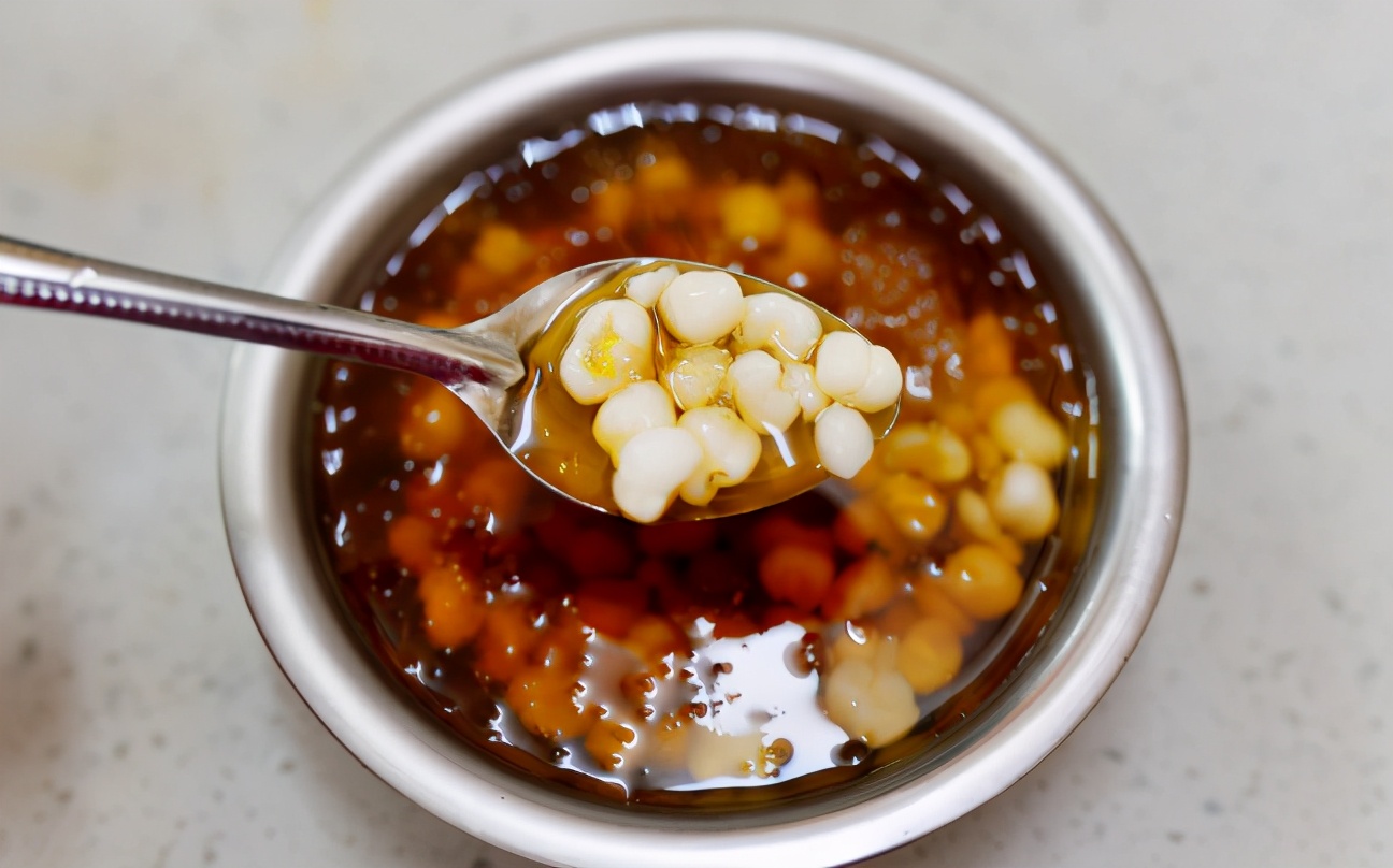 豆腐花嫩滑入口即化,红糖水里悬浮着冰渣,一口喝下去沁人心脾,和酸辣的螺蛳粉简直是神仙搭配。除了豆花还有玉米糖水,以前我没吃过这样的玉米糖水,所以觉得很新奇。玉米大大粒而且很糯,吃起来很像薏米,有点嚼头。