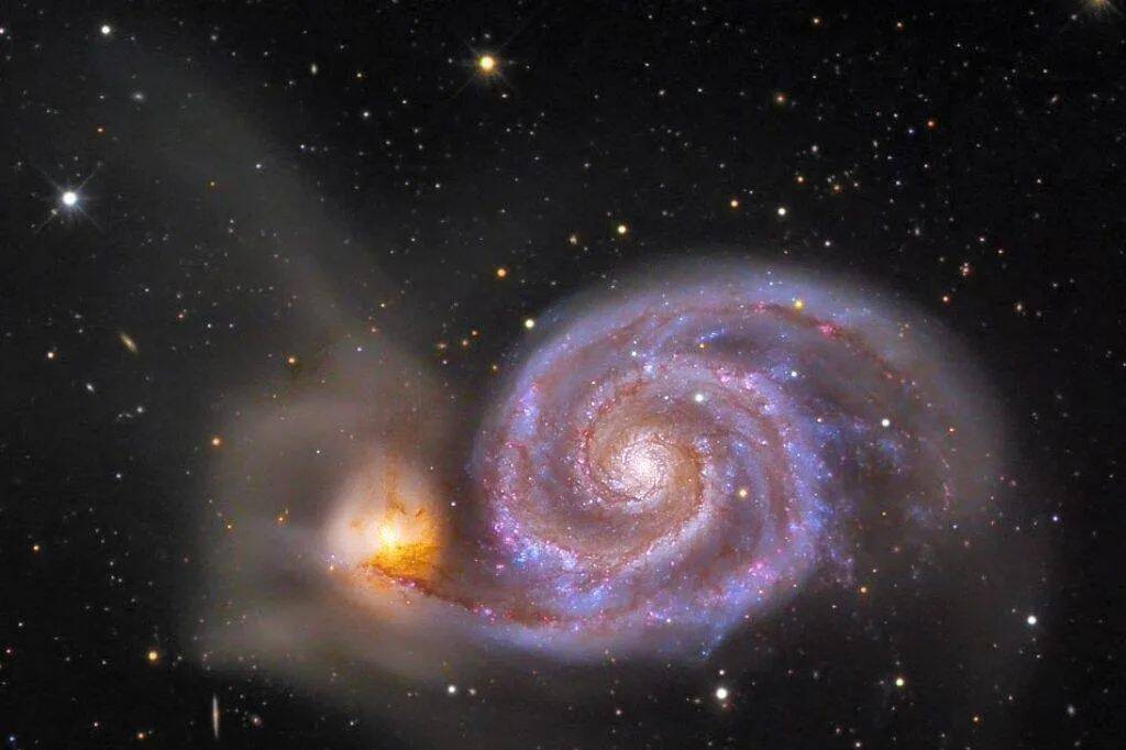 星系的形状被它们的邻居所影响,而且也经常被星系碰撞所影响。银河系本身就正在经历着一场与我们最近的邻居,仙女座星系的碰撞。即使它和银河系有着相同的年龄,哈勃观测仍揭示出,仙女座晕环中的星星远比银河系中的那些年轻得多。根据这和其他证据,天文学家们推断,仙女座已经破碎为一个,也可能是几个其他星系。