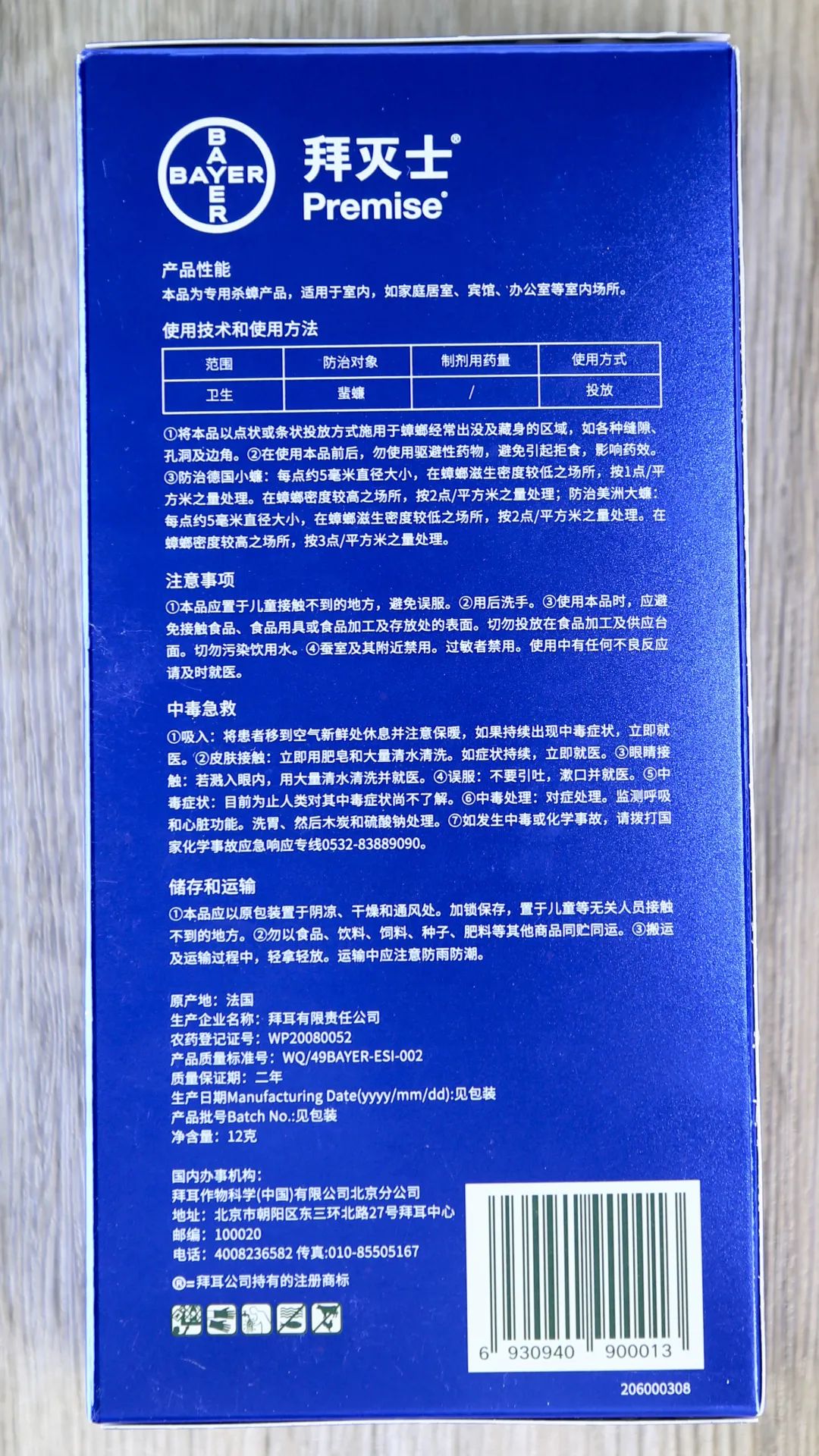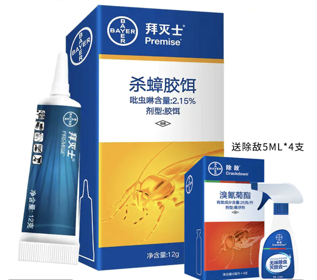 拜耳将蟑螂诱食成分与2.15%吡虫啉形成了黄金比例,这是实验室无数次研究得出来的,保证蟑螂有一定的毒发时间让它、返巢,被同类分食,达到全窝灭杀的效果。