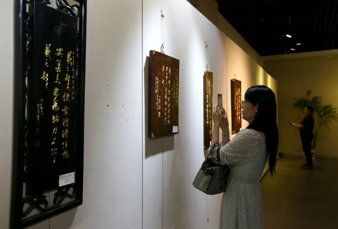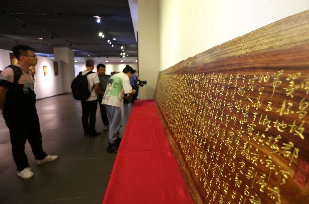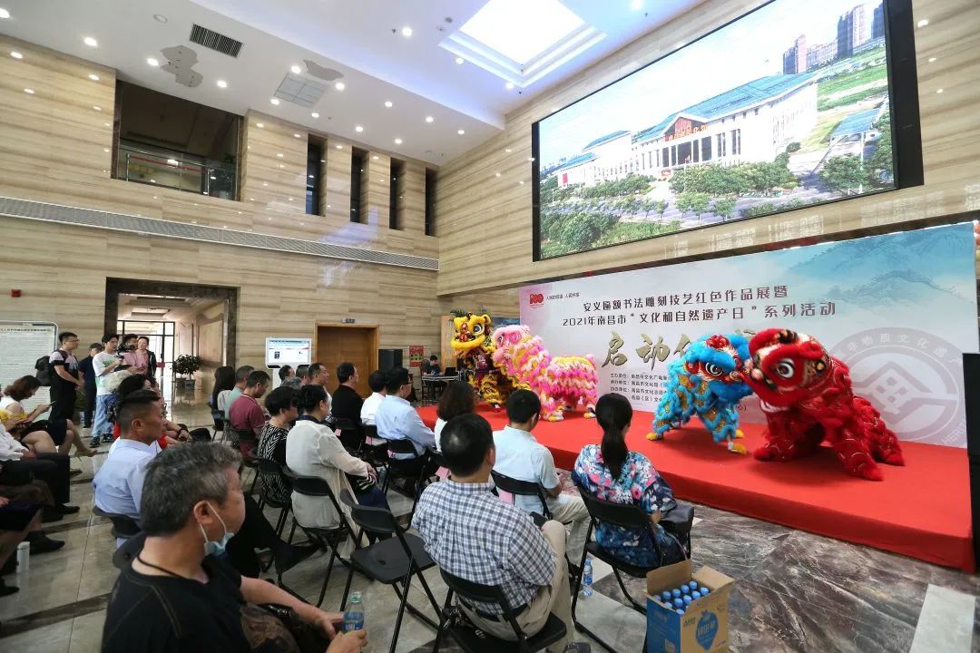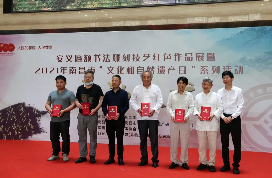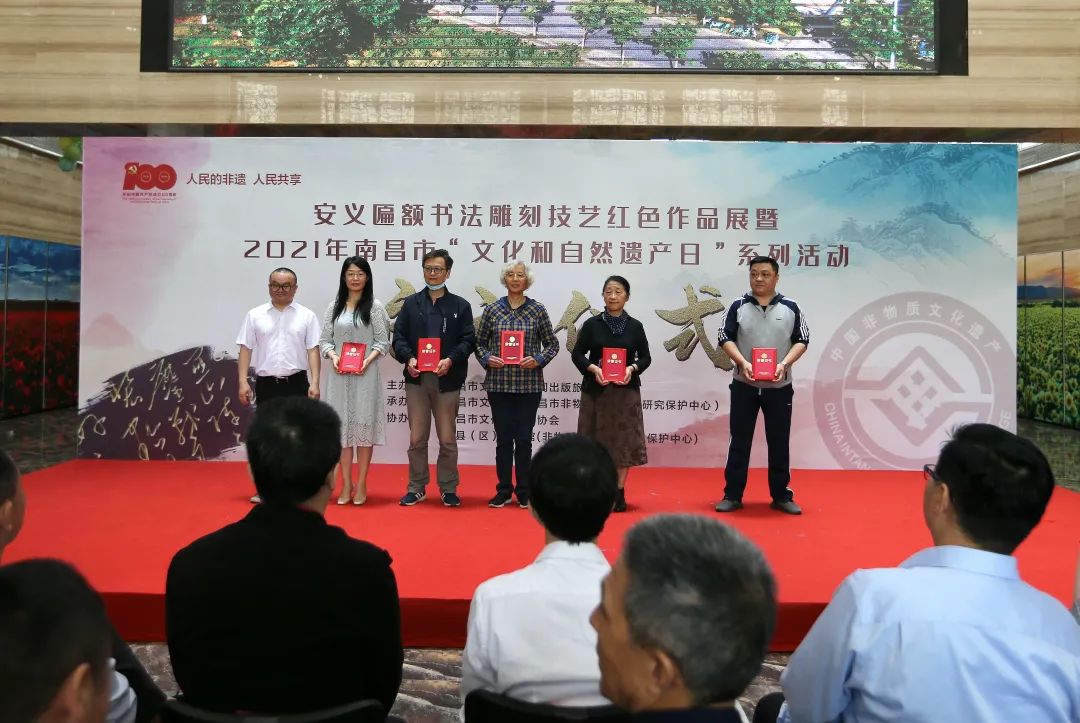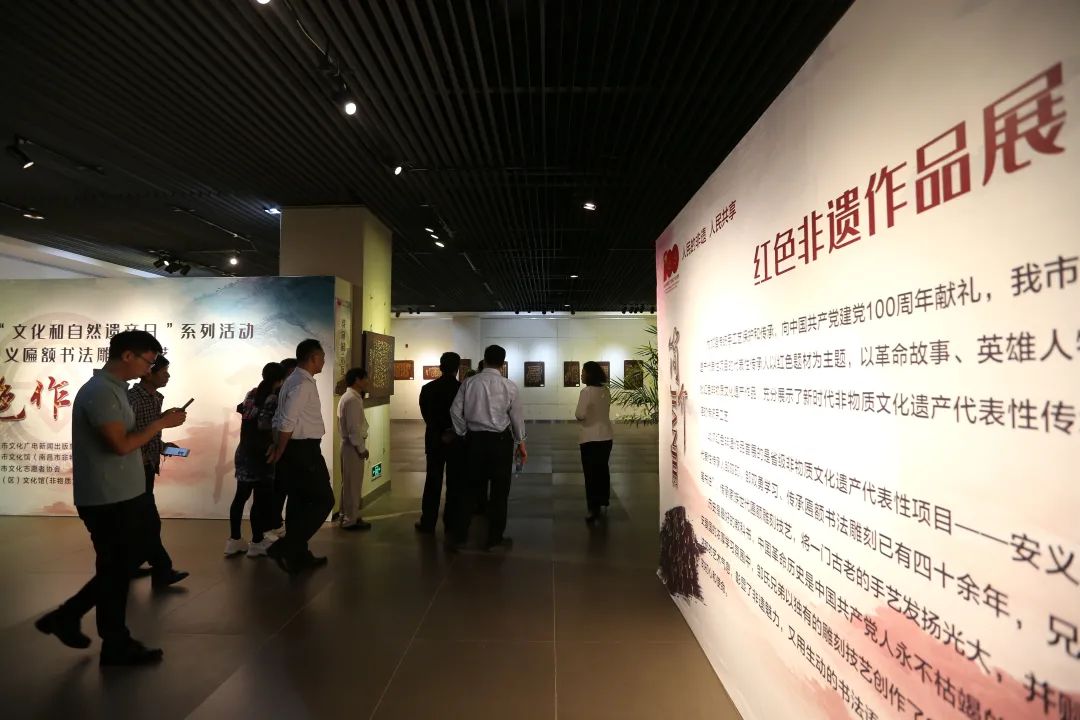 为大力弘扬优秀传统文化,充分展示近年来我市非物质文化遗产保护工作的丰硕成果,提高全社会的保护意识,促进非物质文化遗产在群众中更好的传承发展,向中国共产党建党百年献礼,5月25日上午,由南昌市文化广电新闻出版旅游局主办,南昌市文化馆、南昌市文化志愿者协会承办,各县(区)文化馆协办的安义匾额书法雕刻技艺红色作品展暨2021年南昌市“文化和自然遗产日”系列活动在南昌市文化馆一楼朝阳展厅启动。