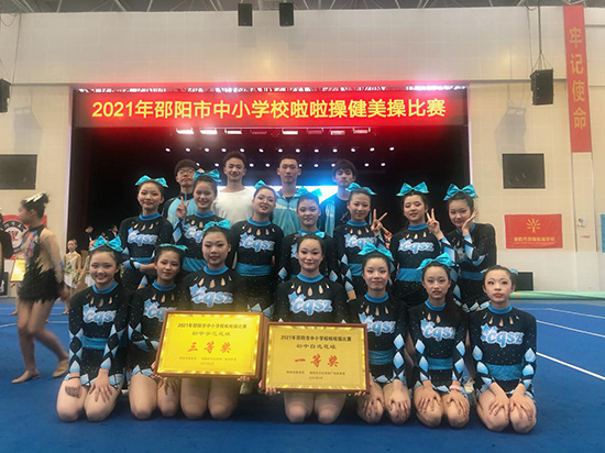 5月21日至23日,湖南省邵阳市2021年中小学校啦啦操、健美操比赛在市五中举行。邵东市城区三中代表队在此次比赛中获得初中组自选花球一等奖,初中示范花球三等奖。