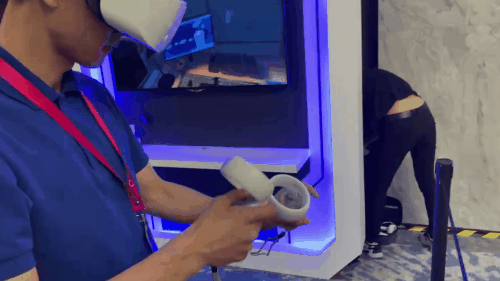 交互层面,现场环境下可以实现基础的6DoF体验。精准度和反馈效果上会略显迟钝,显然,这并不是交互硬件层面的问题,因为此类问题在本地体验时并不存在。为了验证这一想法,在大会散场后陀螺君专门请工作人员允许我再次体验一番。在人流减少的情况下,NOLO Sonic的交互精度全面提升,《节奏光剑》在高难度下劈砍方块的精准度毫不逊色。