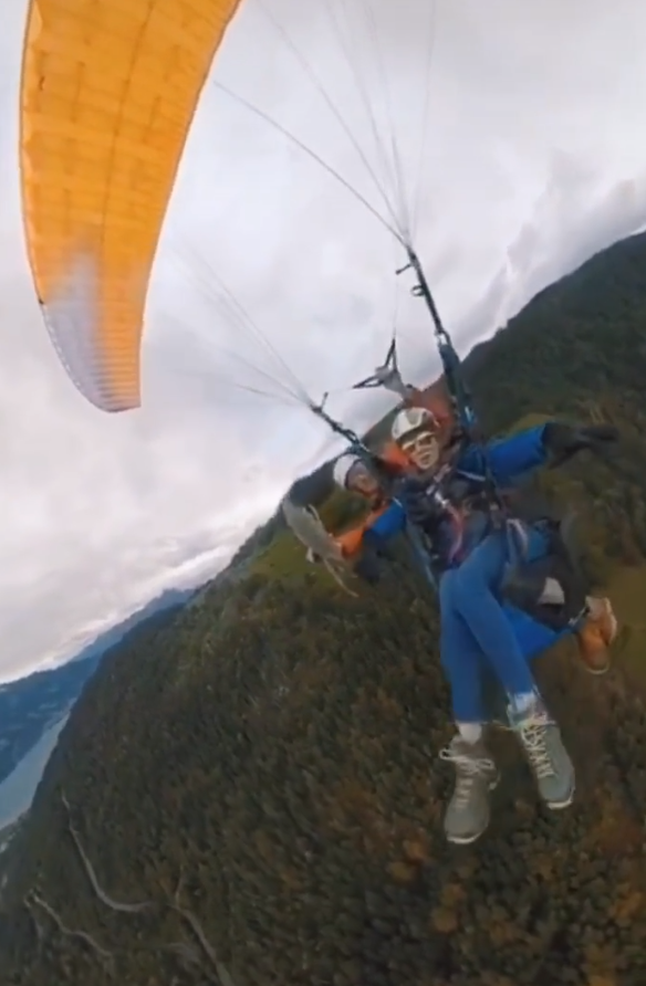 由于常年保持运动的习惯,刘嘉玲的体力比同龄人好很多,她可以挑战一些同龄人望而却步的运动项目,高空滑翔也不在话下,她展开双臂徜徉在天地之间,毫无惧怕,状态轻松。