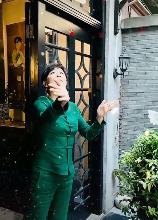 近日,刘嘉玲在社交平台更新了一则视频动态,并配文“人生从容才能看到美”。视频中,刘嘉玲化着淡妆身着全绿色唐装,留着齐耳短发,头戴宝石耳坠,手戴宝石戒指,造型简单又不失贵气。