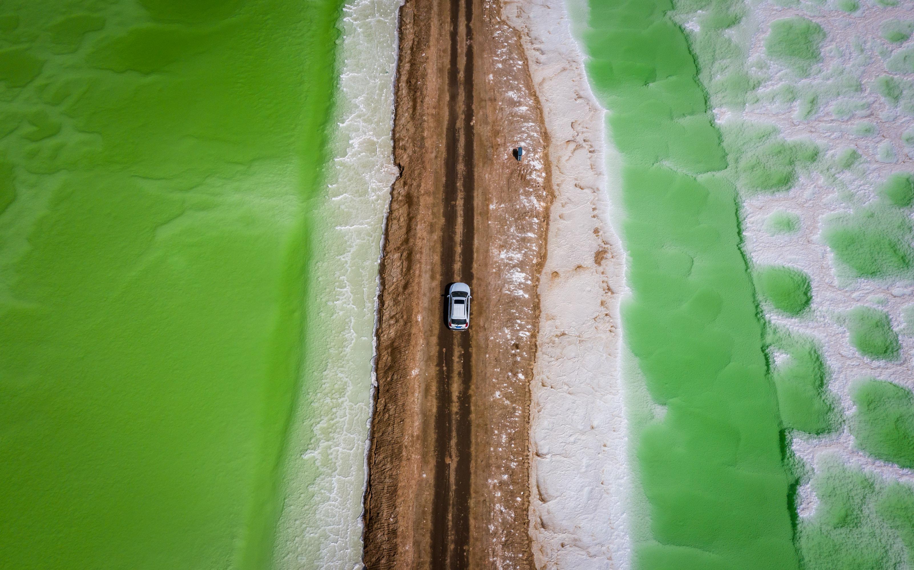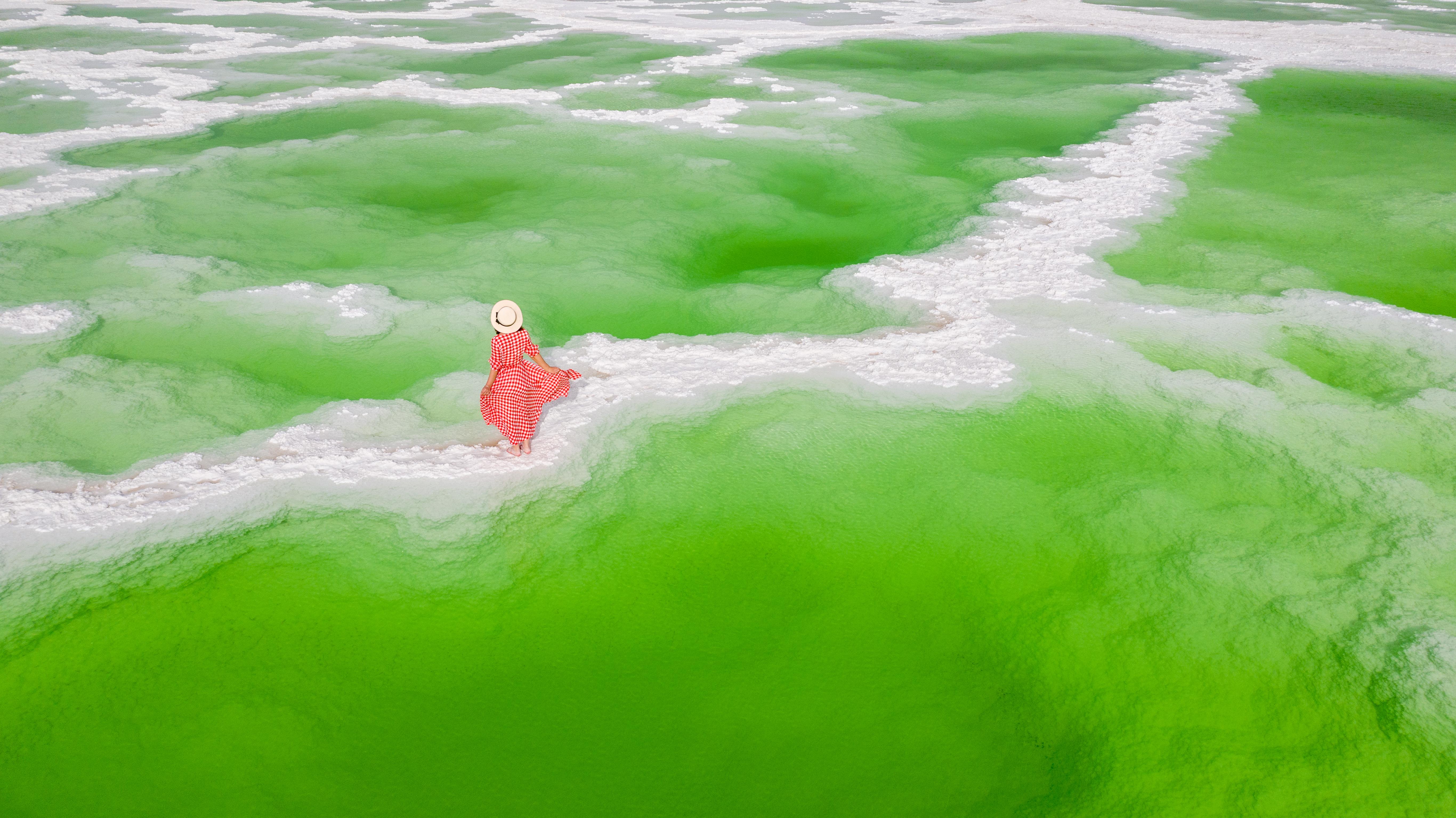 风平浪静时,如镶嵌在戈壁上的翠玉,宛若天空之境,