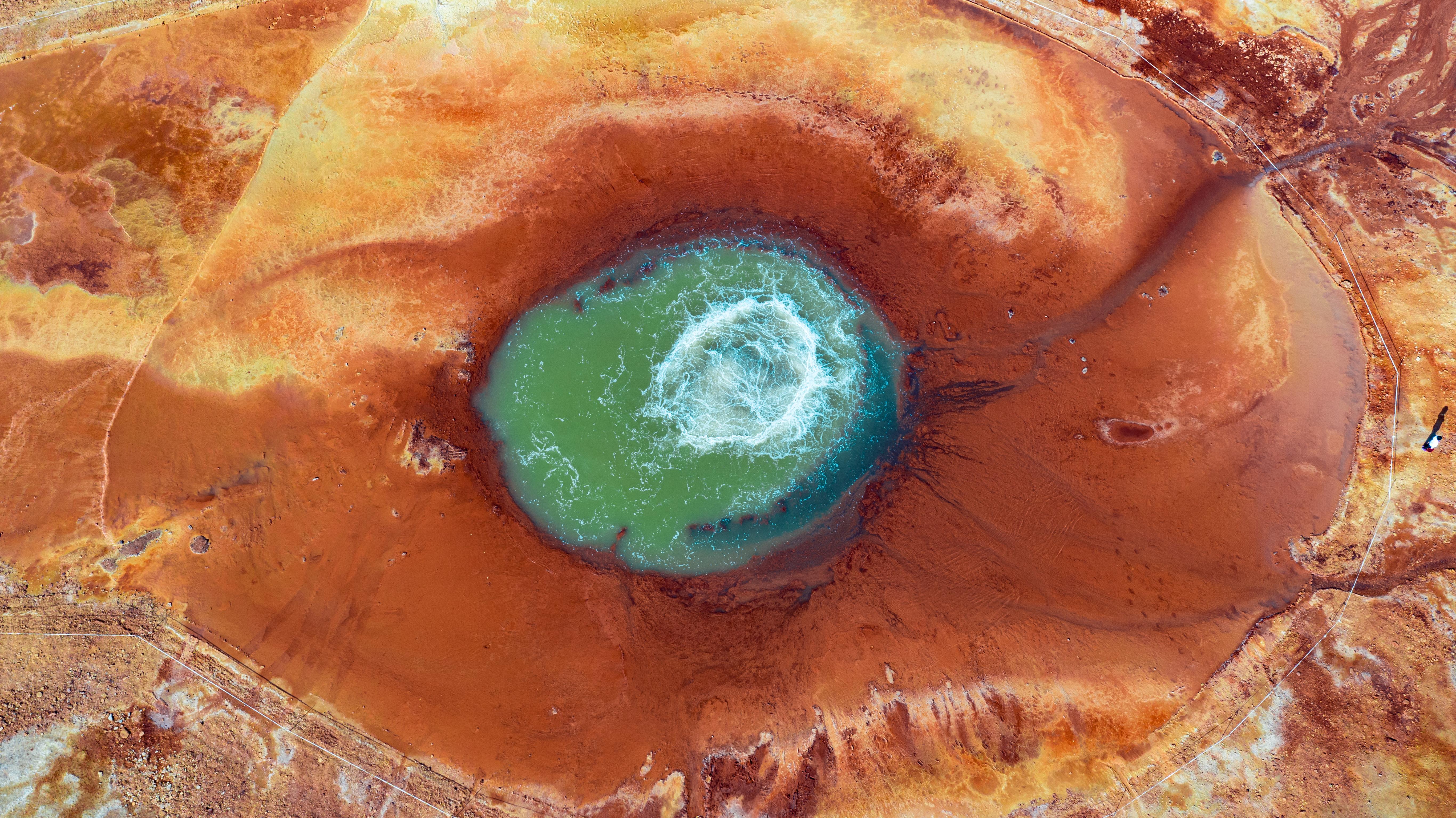 和泉眼周围的硫磺矿物质长久地碰撞,