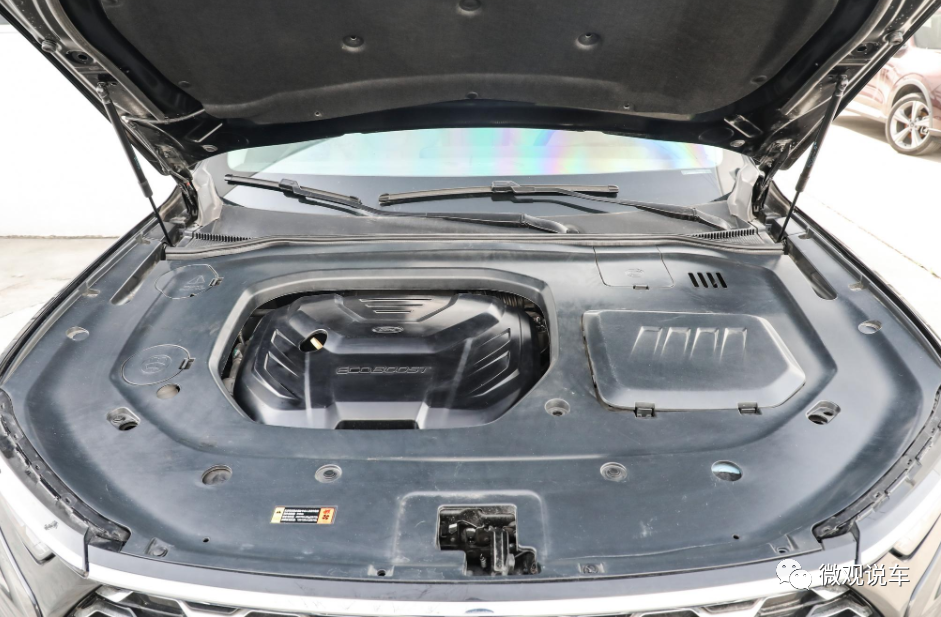 外形方面还是采用福特家族设计语言,大尺寸的中网进气格栅,内部网状结构如同波纹一般,银黑相间的色彩更有质感,两侧犀利的大灯中间有银色镀铬饰条连成一体。引擎盖上突出线条增强了肌肉感和力量感,下包围设计比较张扬,雾灯区域也有很多肌肉线条,并且有银色的镀铬装饰条连成一体。嗯嗯嗯,汽车前唇部分也有银色装饰物包裹,整个汽车头部的轮廓非常宽厚,看起来力量感十足。