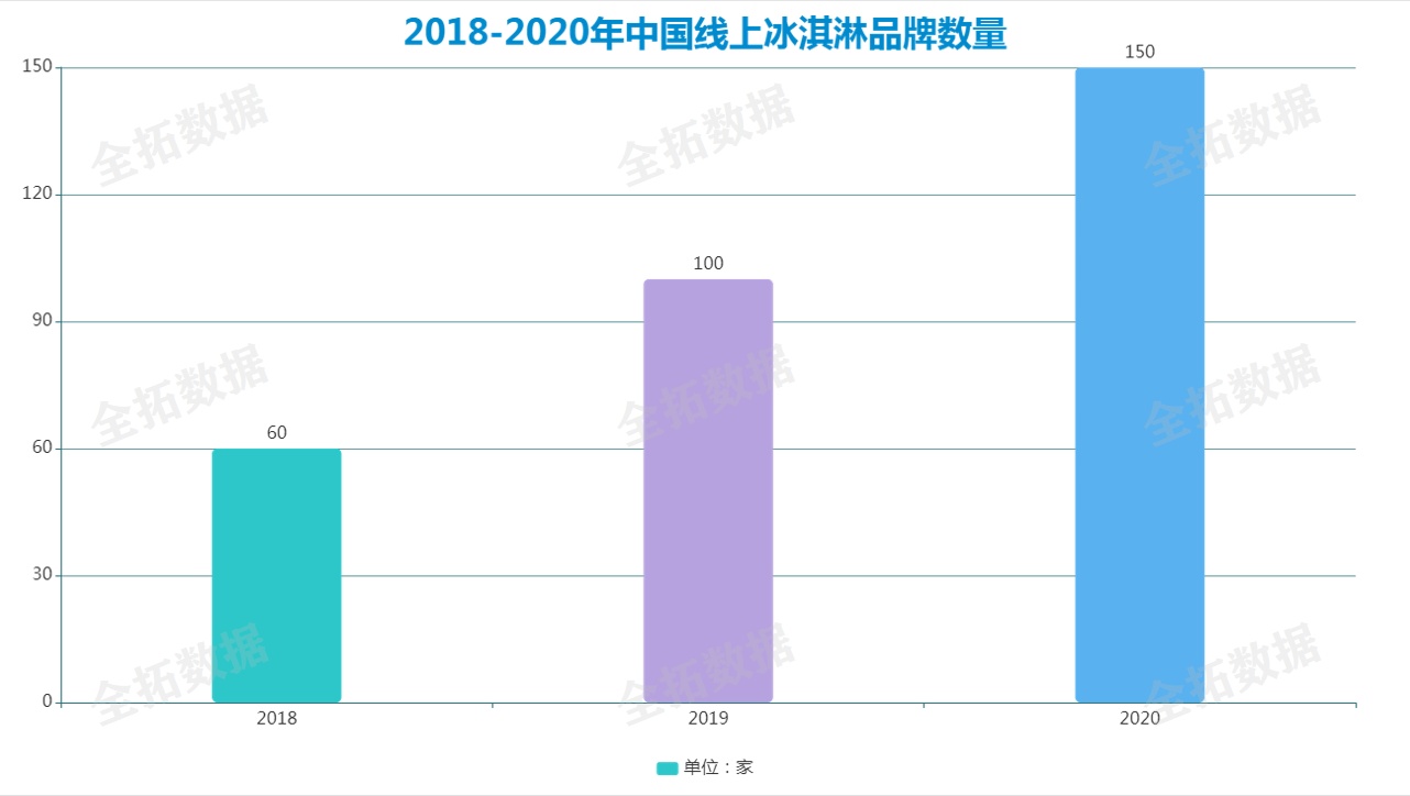 冰淇淋市场处于“三分天下”的状态,外资品牌、本土乳业以及地方性老牌形成“三分天下”的局势。而如今,随着大量“网红”的涌入,冰淇淋市场的品牌梯队已经开始洗牌。从数据上看,2018年线上冰淇淋品牌仅有60余家,2019年超过100家,2020年已增加到150多家。