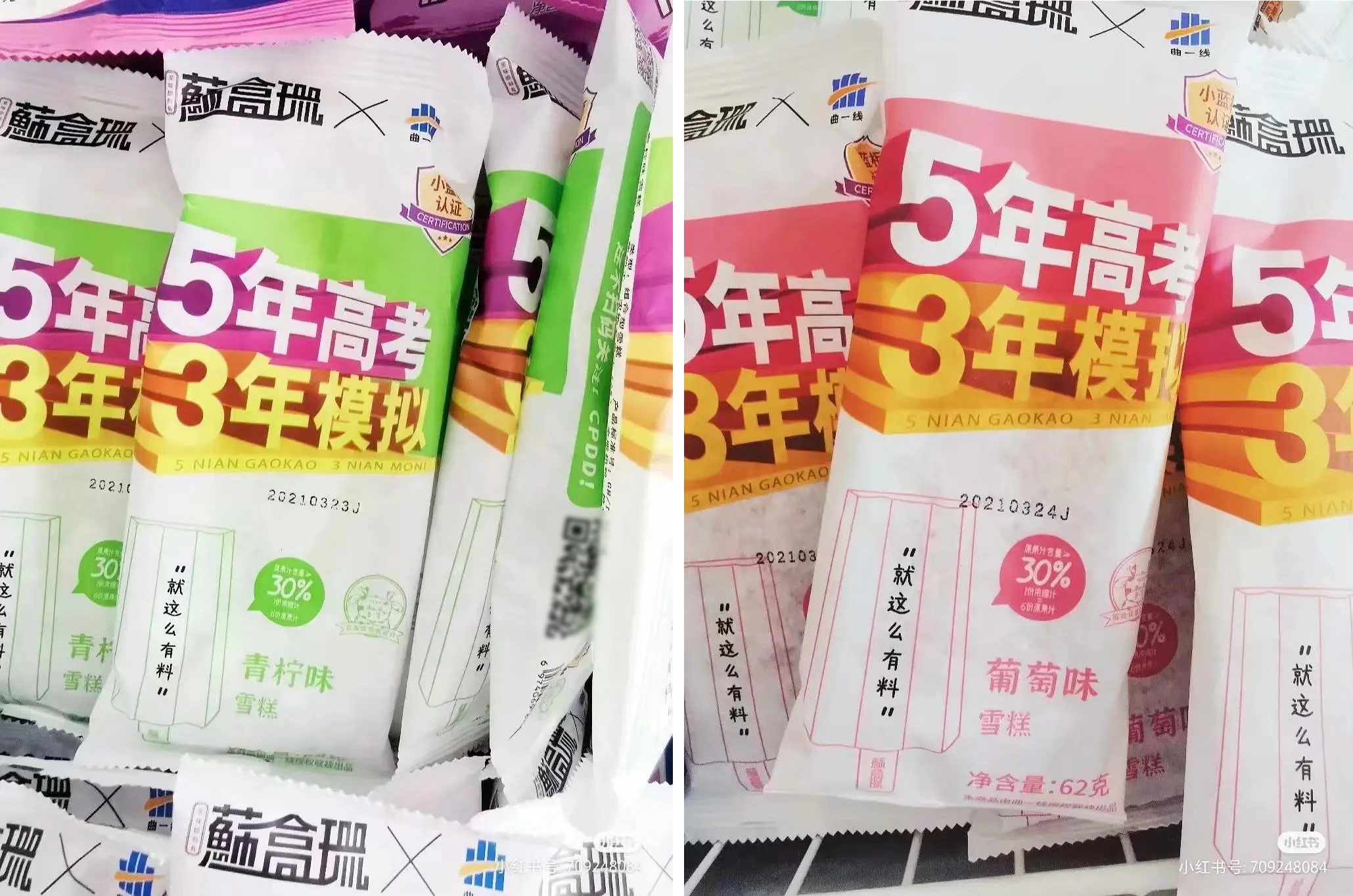 除了景点和公园,不少冰淇淋品牌也注入新鲜元素吸引消费者。比如全聚德海盐焦糖、草莓两种口味的萌宝鸭棒棒冰;以燕麦、植物奶为基底的植物奶品牌Oatly推出的“地球冰淇淋”;《五年高考三年模拟》教辅联名款冰淇淋;甚至出现了芥末的、鱿鱼的、豌豆黄的,东北铁锅炖、长沙臭豆腐以及德式黑啤口味等奇葩雪糕。