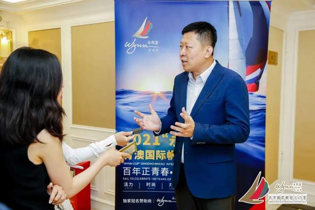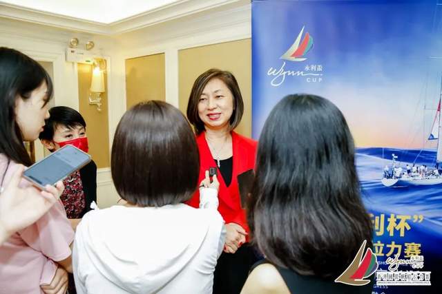 永利渡假村(澳门)股份有限公司总裁兼常务董事、青澳国际帆船拉力赛组委会荣誉副主席陈志玲及澳门会展旅游业协会会长、青澳国际帆船拉力赛组委会副主席何海明接受媒体采访。