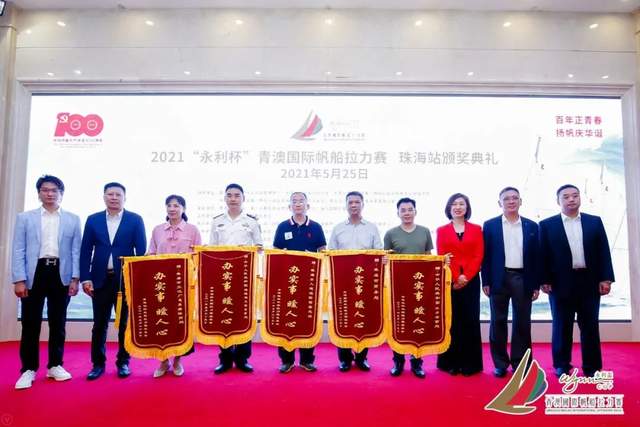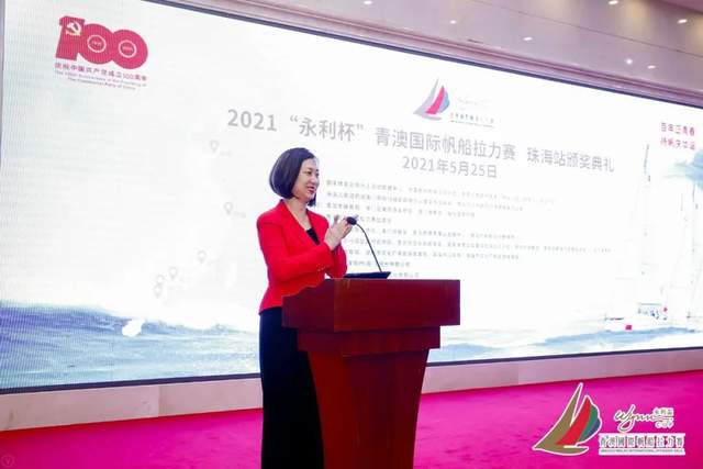 同日18时,在做好疫情防控工作的前提下,2021“永利杯”青澳国际帆船拉力赛珠海站颁奖典礼在珠海度假村酒店星韵厅隆重举行。出席的青岛嘉宾有:青岛市原市委常委、副市长,青澳国际帆船拉力赛组委会荣誉副主席臧爱民,青岛市政协原经济委主任、青岛奥帆城市发展促进会副秘书长朱悦涛,青岛市体育局副局级领导、组委会副主席刘谕,青岛奥帆城市发展促进会副秘书长苏文洁,青岛市体育事业发展中心负责人、组委会秘书长张敏,青岛市体育事业发展中心竞赛部部长王勇,港中旅国际(山东)旅行社总经理田平,青岛奥帆城市发展促进会副秘书长高君;澳门嘉宾有:中央人民政府驻澳门特别行政区联络办公室珠海联络部部长彭清洲,中央人民政府驻澳门特别行政区联络办公室珠海联络部综合处处长蔡克君,永利渡假村(澳门)股份有限公司总裁兼常务董事、青澳国际帆船拉力赛组委会荣誉副主席陈志玲,山西省政协常委、青澳国际帆船拉力赛组委会荣誉副主席陆恵德,澳门会展旅游业协会会长、青澳国际帆船拉力赛组委会副主席何海明,青澳国际帆船拉力赛组委会秘书长张潮杰;珠海的嘉宾有:珠海市商务局副局长林继新、珠海市商务局九洲港口岸分局局长曾庆兆、港珠澳大桥海事局副局长孙晓光、珠海总站边防检查处副处长钟剑、九洲港海事处副处长唐昕、珠海市商务局科长张仕力、珠海市体育总会秘书长蓝玉娟、九洲航海副总经理郭热彬等嘉宾、参赛选手及媒体记者出席。