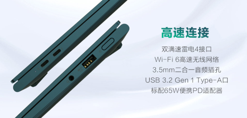 此外,该机轻约 1.41kg 厚 15.68mm,提供双全功能 USB-C 接口、USB-A 3.2 Gen 1 接口,标配 65W 便携 PD 充电器,配备 71Wh 电池 ,支持 PD 快充。