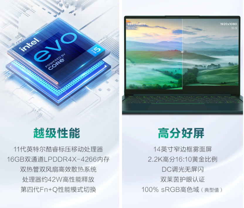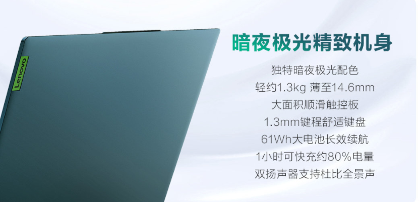 该机搭载了英特尔酷睿 i5-11300H 处理器,配备 14 英寸 2.2K 16:10 雾面屏,支持 DC 调光,重量为 1.3kg,电池容量为 61Wh。