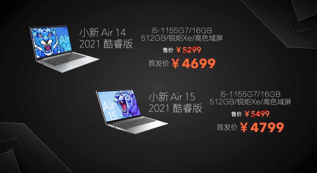 联想小新 Air 14 2021 酷睿版首发价 4699 元,小新 Air 15 2021 酷睿版首发价 4799 元,将于 6 月 11 日开启预售。