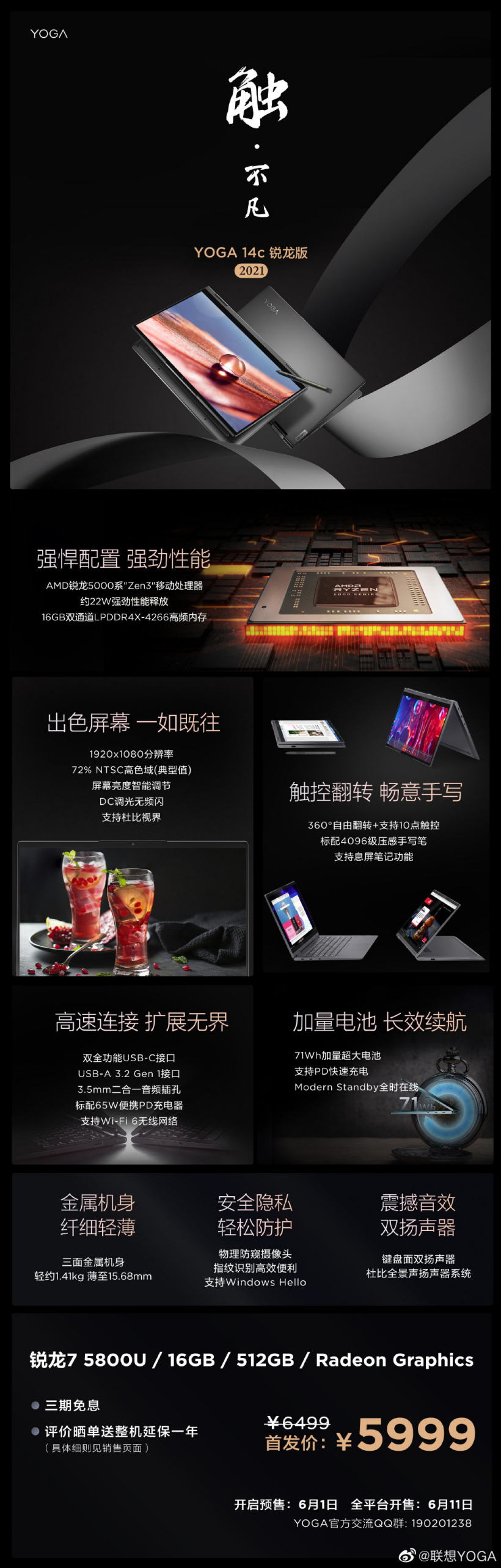 此外,联想官方还发布了小新 Pro 14 锐龙标压版的 R5-5600H 版本,将于 6 月 1 日开启预售,首发价 4799 元。
