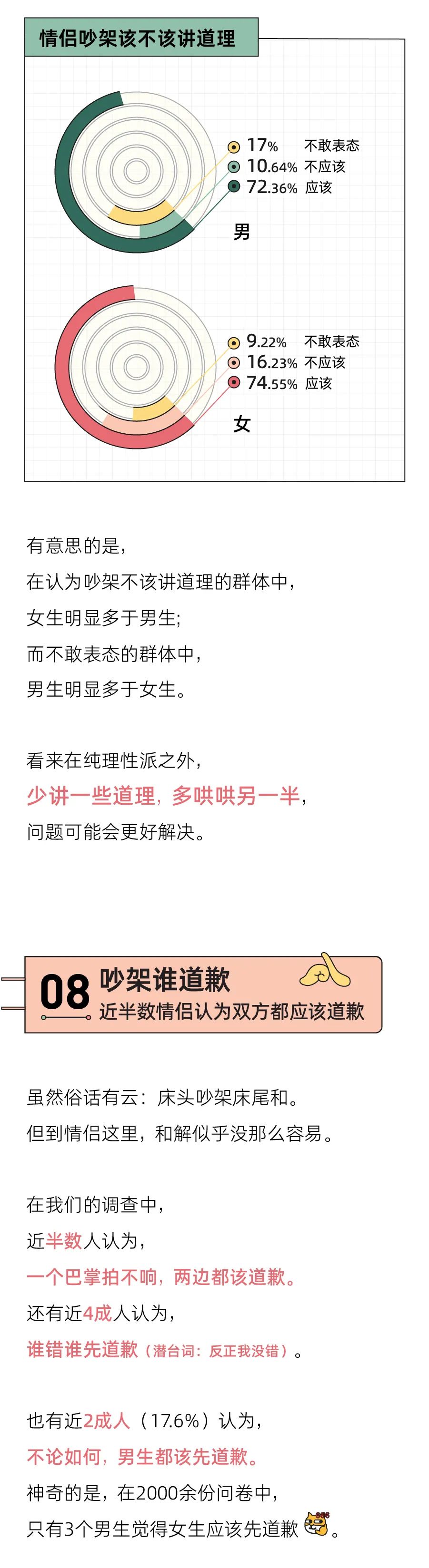 2、区分感受和想法:描述自己的感受,而不是“你不爱我”这样片面的想法。比如,“意见相左”时,不要直接上升到“我们不合适”。