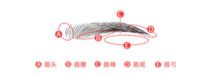 为了让图片显示清楚,图片线条和标示位置会粗重,在给自己画眉的时候建议可以淡一点,线条细一些,慢慢添加。眉毛底部线条实一些,眉上缘可以用虚线画框。