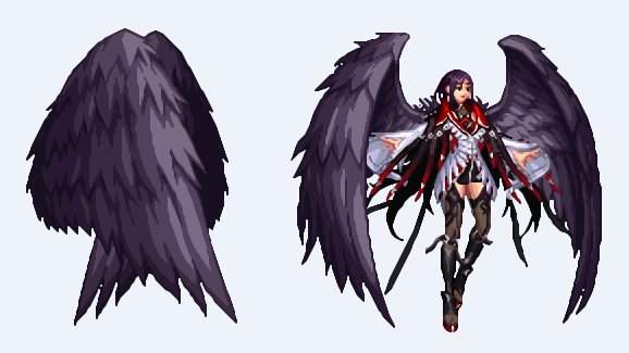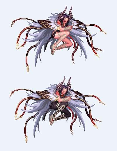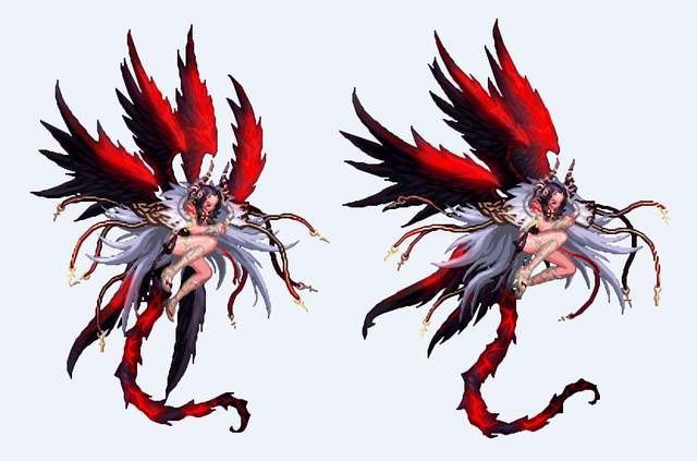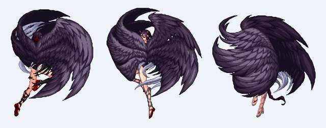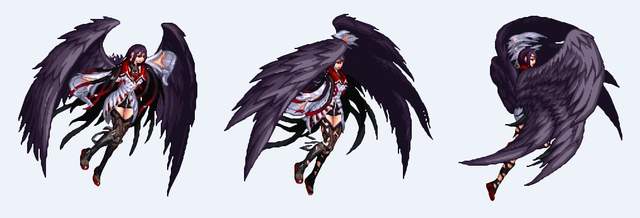 ◆人物动图演示中,前后的衔接动作和人物肢体设计的非常流畅,翅膀的张力效果做的也不错;