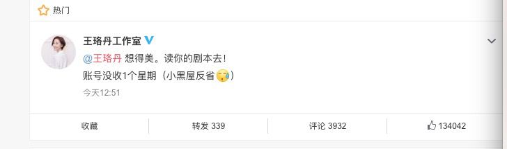 在这件事登上热门后,王珞丹工作室发了一份文件:“想得美。读你的剧本去!”,否认王珞丹要退圈的谣言。