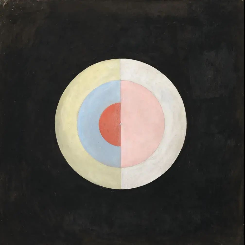从这些作品中,会发现很多女性艺术家将自己定位在性别之外。 如瑞典艺术家Hilma af Klint(希尔玛·安·克林特)。她的画作擅于在强烈的几何学美感中捕捉无形的内在与外在世界,反映了她对世界宗教、原子能量、植物等领域的探索。去世后留下的指示是直到去世20年后她的任何作品都不能展出。或许她当时就已明白,自己的对话者是在未来而非当下。2018年,古根海姆才得以筹备举办《Hilma af Klint: Paintings for the Future》,展出了她若干巨型、明亮而充满神秘意味的抽象作品,成为有史以来古根海姆美术馆最多人参观的展览艺术家。因为其作有部分早于康定斯基,故曾有学者提出,一直秘密工作的她是抽象绘画的发明者。无论此论述准确与否,都在一定程度上展现了这位女性艺术家对抽象艺术的重要贡献。