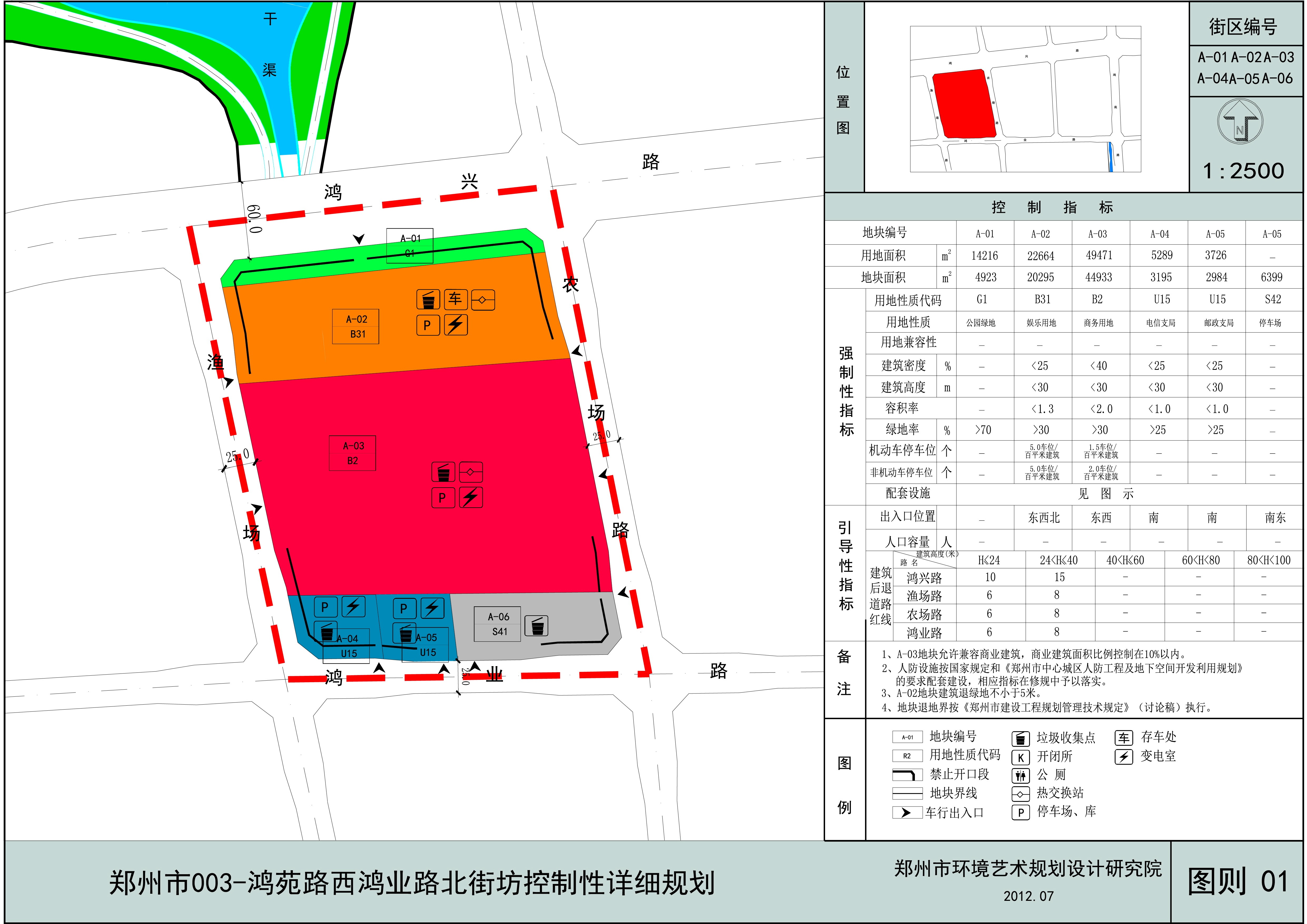 根据规划指标,G-05-01地块建筑密度小于40%,建筑高度小于24米,地块容积率小于2,绿地率大于35%,建筑风格、建筑立面应与郑州商代遗址景观风貌相协调,服从整体空间形态的要求,处理好与周边建筑空间的关系。地块配建热交换站、变电室、机动车停车场(库)、非机动车存车处、垃圾收集点、公共厕所、雨污水提升设施等。