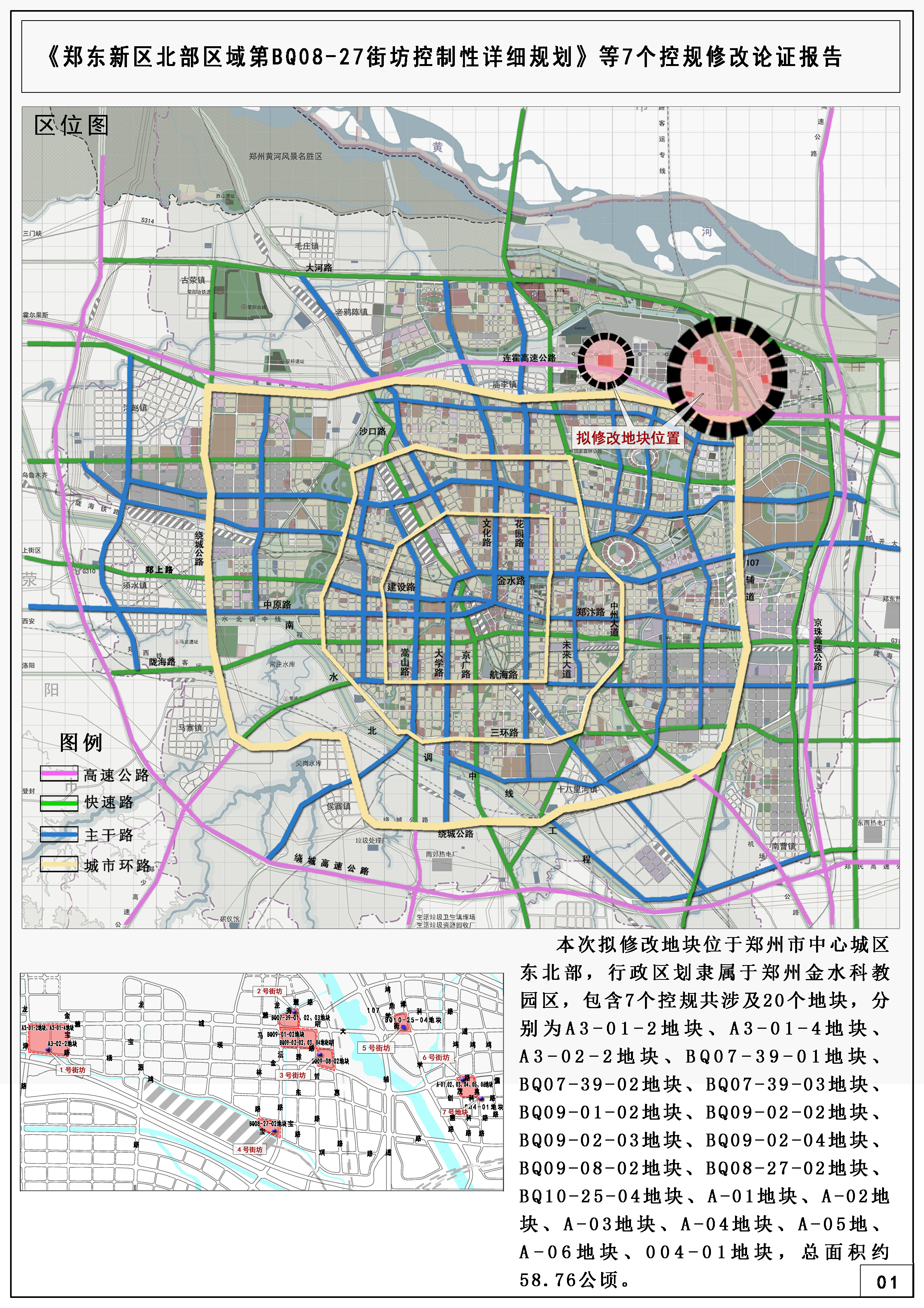 除商代王城遗址控规外,同日,市自然资源和规划局还发布了《郑东新区北部区域第BQ08-27街坊控制性详细规划》等7个控规修改必要性公示,涉及金水科教园区的7 个街坊20个地块,总面积约58.76公顷,主要是对用地性质、道路等方面做出调整。